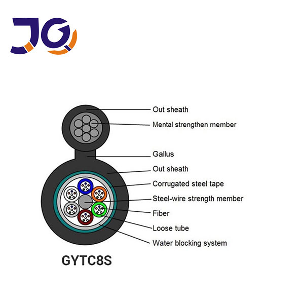 GYTC8S एक स्व-सहायक एरियल फाइबर ऑप्टिक केबल है जिसे बाहरी उपयोग के लिए डिज़ाइन किया गया है। यह एक फंसे हुए ढीले ट्यूब संरचना के साथ 1 से 144 फाइबर का समर्थन करता है। केबल में एक मैसेंजर वायर, PE बाहरी आवरण, फाइबर और जेल से भरे ढीले ट्यूब, और क्रश और प्रभाव प्रतिरोध के लिए नालीदार स्टील टेप आर्मर शामिल हैं। एक केंद्रीय स्टील-वायर स्ट्रेंथ मेंबर तन्यता प्रदर्शन को बढ़ाता है, जो पानी-अवरोधक सामग्रियों से घिरा होता है। एरियल इंस्टॉलेशन के लिए आदर्श, GYTC8S लंबी दूरी के ट्रांसमिशन और LAN संचार नेटवर्क दोनों के लिए उपयुक्त है।