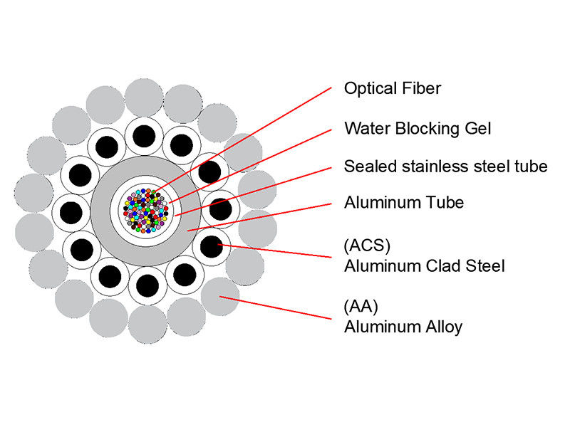स्ट्रैंडेड ऑप्टिकल ग्राउंड वायर (ओपीजीडब्ल्यू) को एल्यूमीनियम-क्लैड स्टील तारों (एसीएस) की दो या तीन परतों, या एसीएस और एल्यूमीनियम मिश्र धातु तारों के मिश्रण से बनाया जाता है। यह डिज़ाइन पावर ट्रांसमिशन लाइनों की सामान्य संरचनात्मक और यांत्रिक मांगों को पूरा करने के लिए अनुकूलित है।